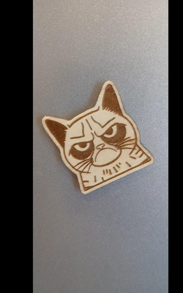 A pin badge that shows the essence of cat. Grumpy fur balls. made from off cut plywood I use every square millimeter I can!